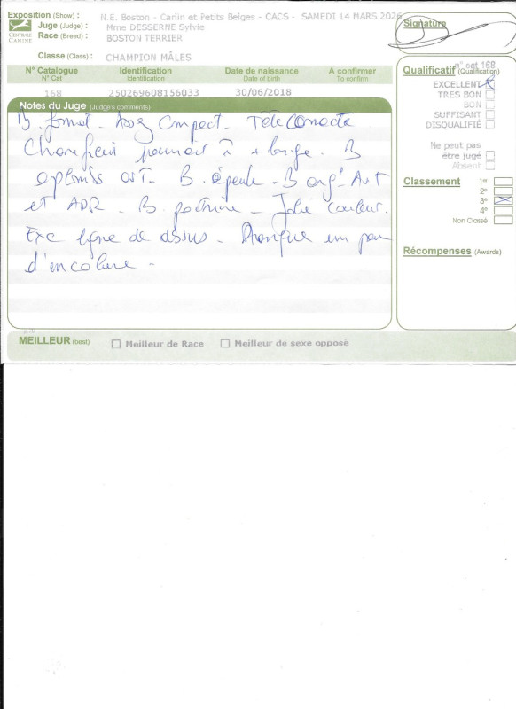 Ville: METZ - CACIB SPÉCIALE BOSTON TERRIER - Juge : Mr DUPAS Jean-Jacques (FR)