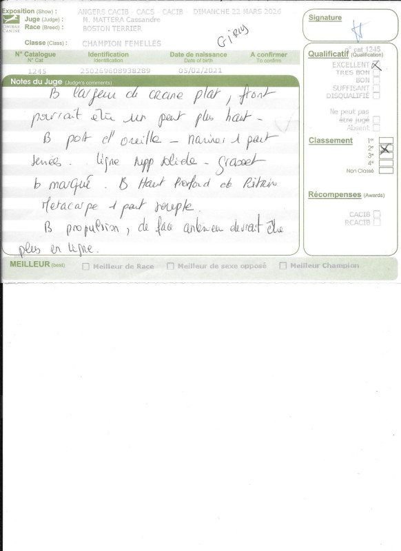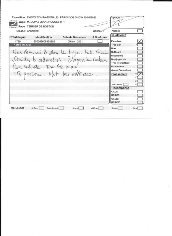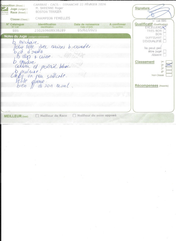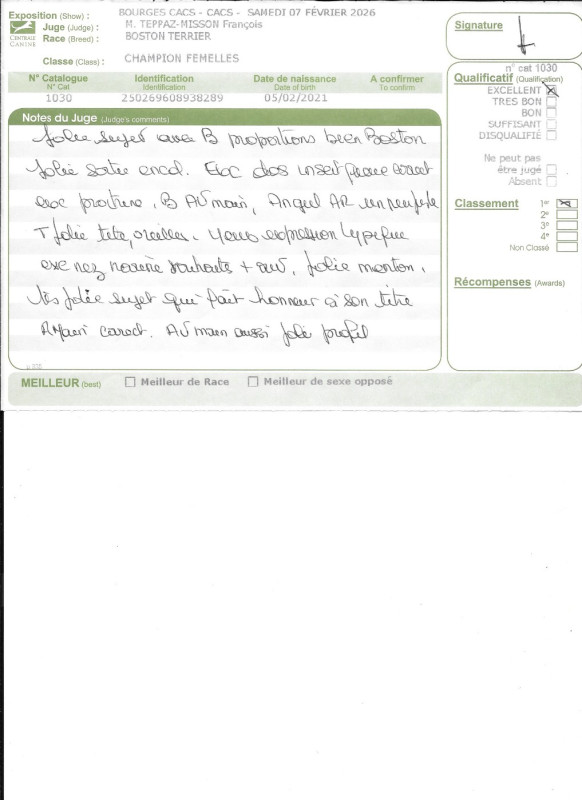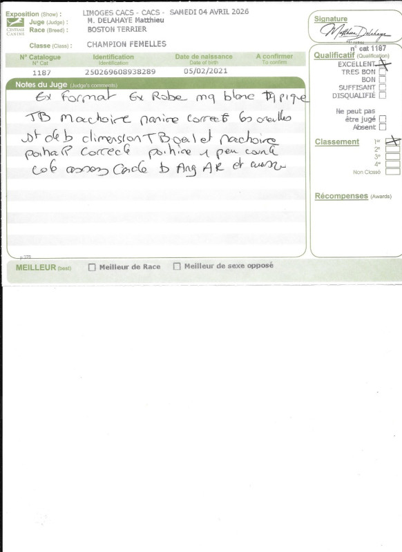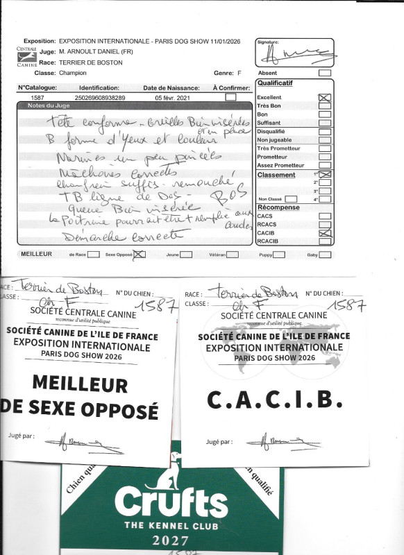1° EXC CACIB BOS qualifiée CRUFTS 2027