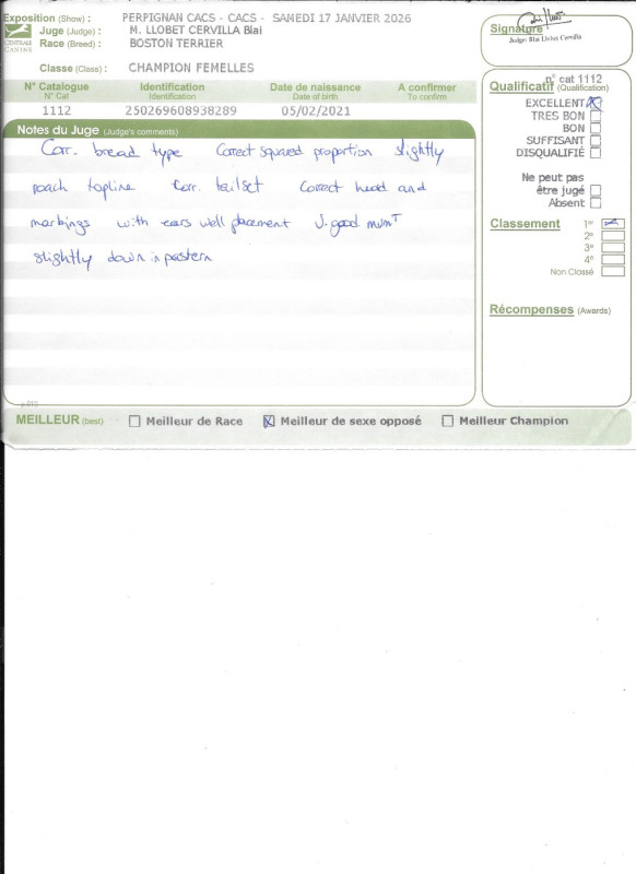 Ville: PERPIGNAN - CACS - Juge : Mr LLOBET CERVILLA Blai