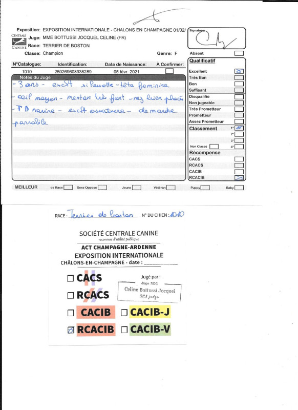 Ville: CHALONS EN CHAMPAGNE - CACIB - Juge : Mme BOTTUSSI JOCQUEL Céline (FR)