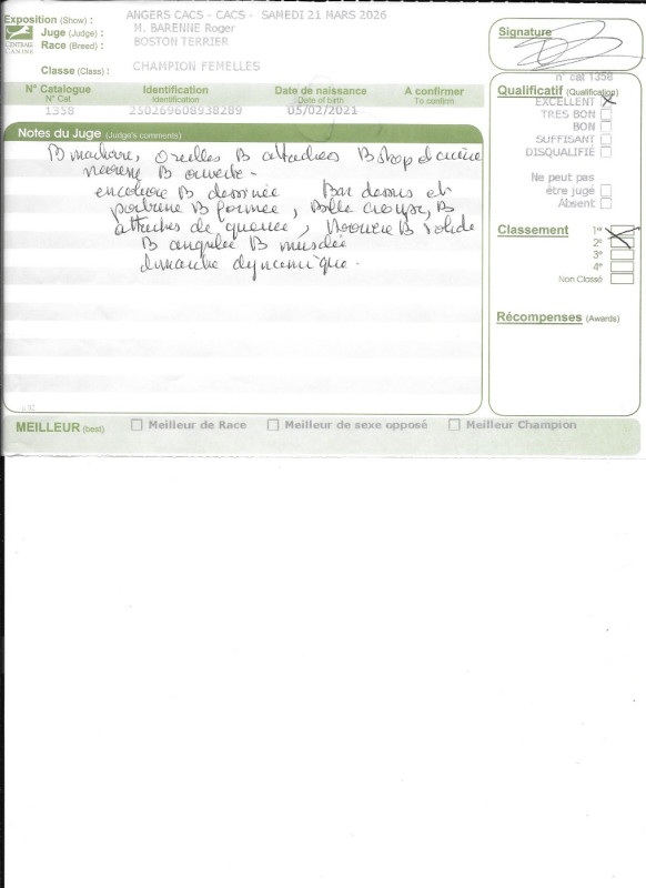 Ville: DIJON - CACS Spéciale Boston - Juge : Mr PICHARD Laurent