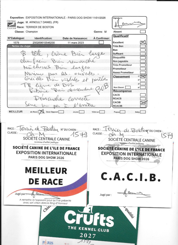 1° EXC CACIB BOB qualifiée CRUFTS 2027