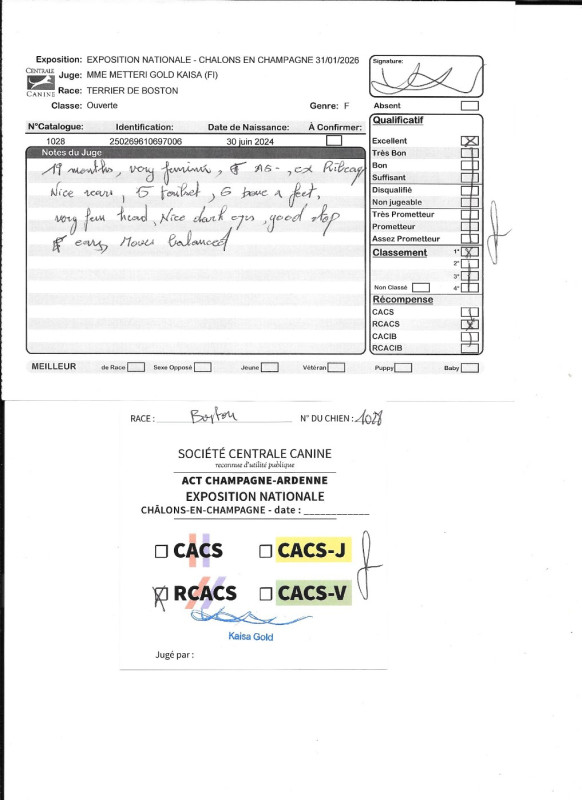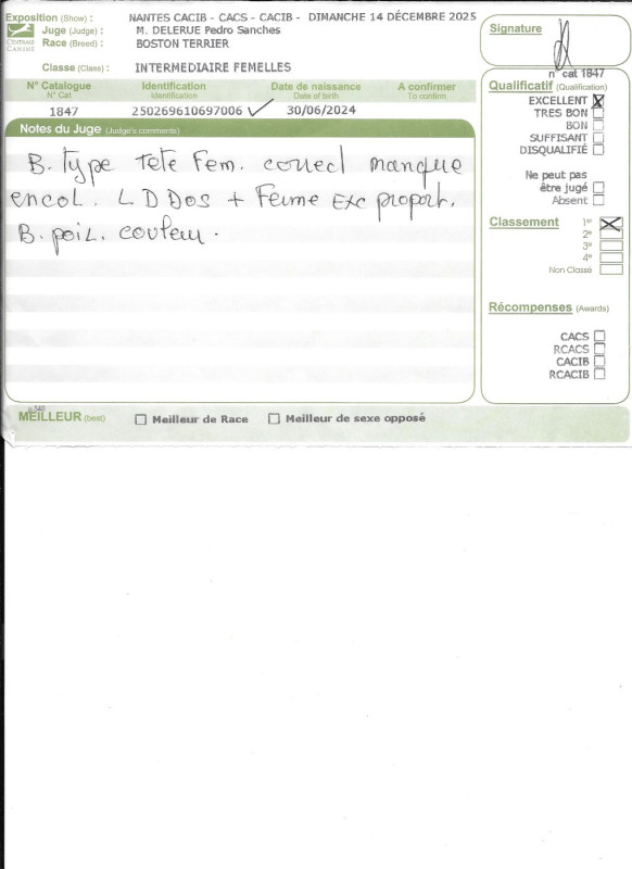 Ville: MONTLUCON - NATIONALE D'ELEVAGE BOSTON TERRIER 2025 - Juge : Mr ESCOFFIER Jean-Louis (FR)